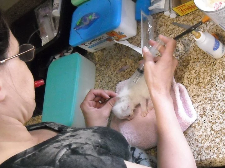 We rescue animals from bad situations, like this kitten who lived her life with her siblings in a closed fish tank with no litter box and little food. After a good, soapy bath she slept in a bed for the first time.